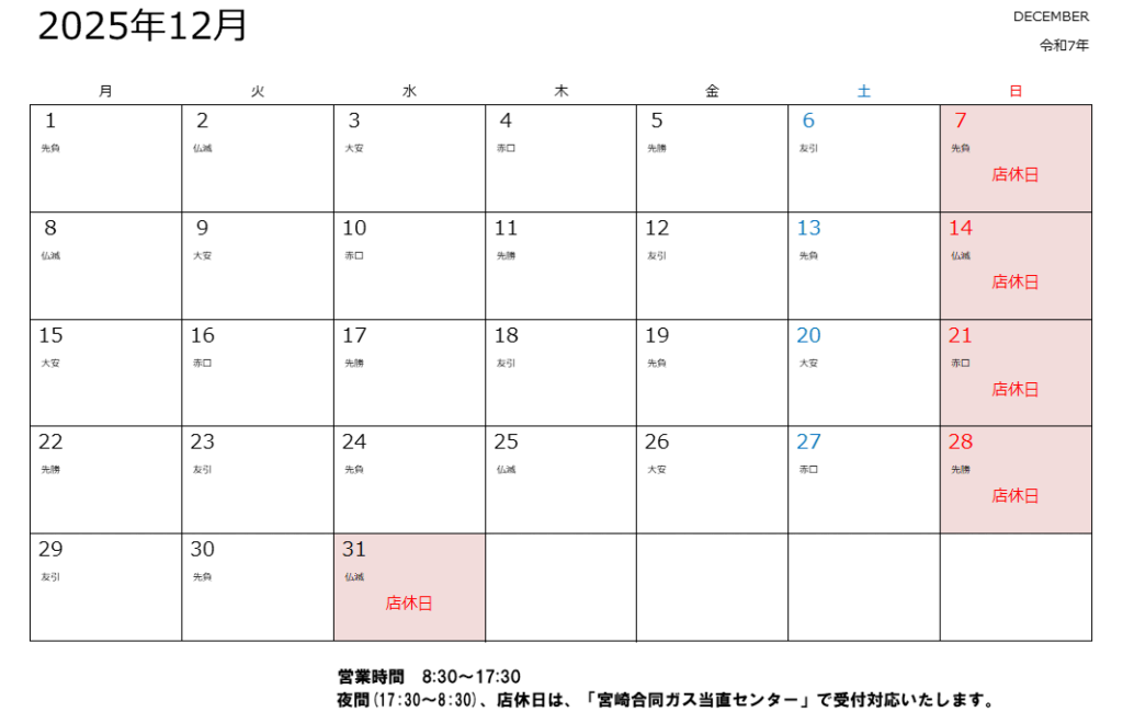 12月・1月の営業日