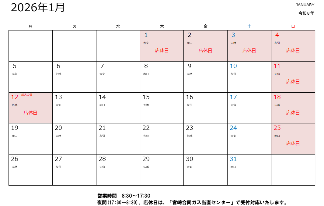 当月の営業日をカレンダーでご確認くださいませ。