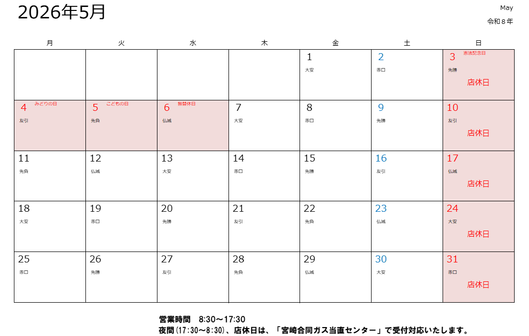 当社の営業日は 平日8:30~17:30(祝祭日は除く)